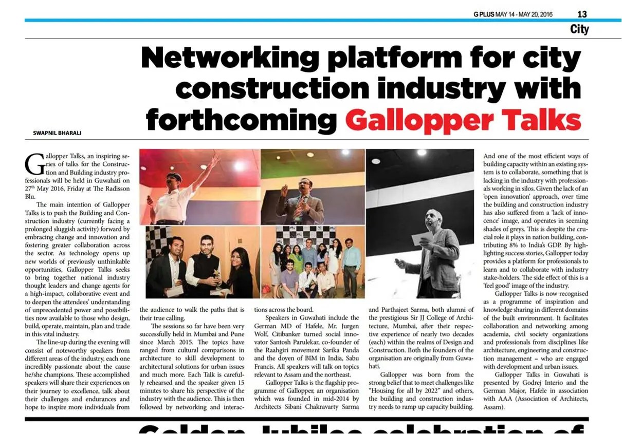 Guwahati tabloid G-Plus announced the upcoming Gallopper Talks in Guwahati Guwahati. Here is the article: Gallopper Talks, an inspiring series of talks for Construction and Building industry professionals will be held Guwahati on May 27 2016, Friday at The Radisson Blu.…
