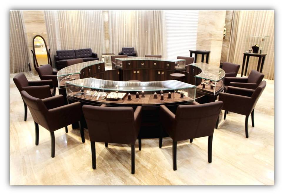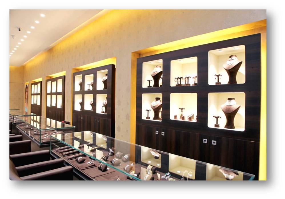 Bhakti shares her story with Gallopper, of designing retail jewelry showroom of Tribhovandas Bhimji Zaveri – The Original, at Bandra Turner road, the new hub town for trousseau jewelry. Accentuating the jewelry was the main focus, which was achieved by using chocolate family colour scheme. Central area of the store with circular display units has been completely dedicated for ‘new arrival’ diamond jewelry. The ceiling has a dome with gold leafing and a chandelier with crystals that compliments the business. Facade display units are customized especially for the Bandra flagship store. The facade and in-store branding and columns are clad with Italian marble to give it an eclectic mix of heritage and a contemporary look reflecting the 150 years of heritage and history behind the brand.