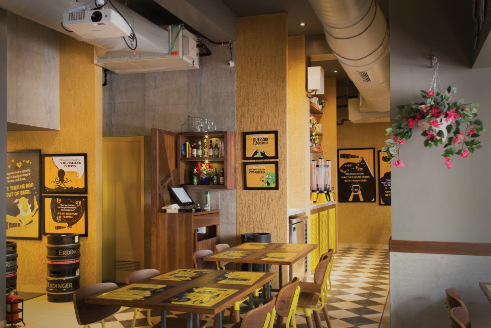 b62a47200dbc2069b7bfba1f3a30ec42One such project was The Beer Cafe at Mumbai. Beer café was already a young successful brand which had several outlets in Delhi when the clients approached SS Designs. With such existing brands Swati feels  people already have a perception about it and they relate it or with either a certain color palette or design. Same was the case with Beer Café, this was not only a boon but also one of the challenges they faced while designing two outlets of this brand. They wanted to maintain the integrity of the brand but at the same time play with a bit of design to give it a new look.